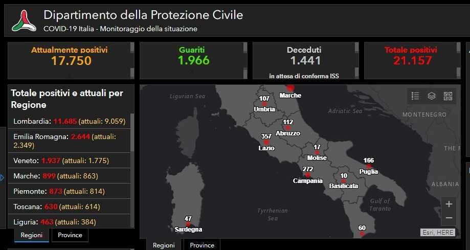 Coronavirus, i dati italiani regione per regione
