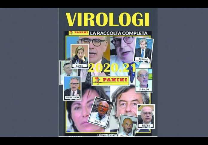 È stata molto condivisa sui social la foto di un finto album delle figurine Panini con i virologi al posto dei calciatori, reazione sarcastica alla presenza costante in tv degli scienziati.