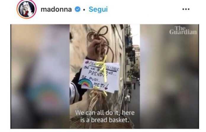“God bless Italy”, anche la pop star Madonna loda l’iniziativa di solidarietà nata nei