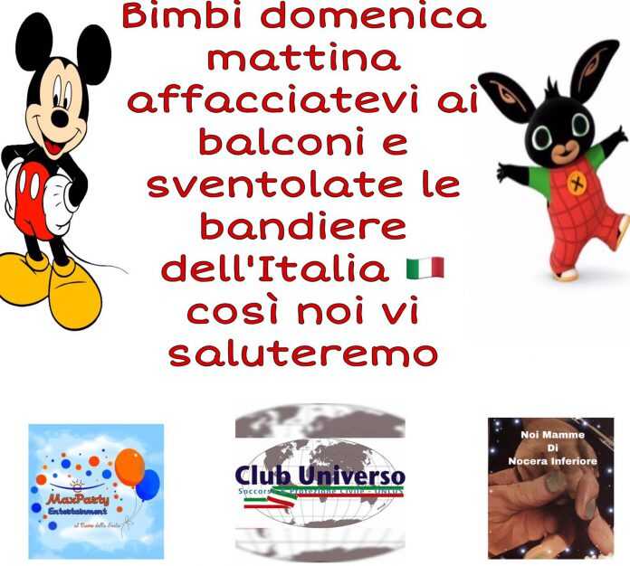 Si tratta di una sfilata dei personaggi più amati dai bambini (Topolino, Bing, Spongebong & company) che attraverserà l’intero territorio comunale domenica 3 maggio dalle ore 10 per salutare i bimbi dai balconi. L’iniziativa è stata resa possibile grazie soprattutto alla disponibilità della Protezione Civile “Club Universo” in persona del presidente Giuseppe Buonocore e Francesca Giordano, che operano da anni con dedizione e amore al servizio del territorio nocerino, e dell’animazione “Max Party” di Angela Benevento, da sempre impegnata nel sociale con attenzione soprattutto verso i bambini.