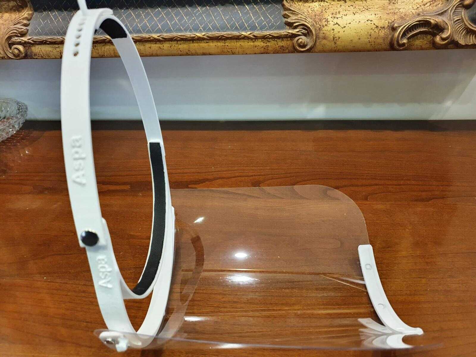 Le visiere protettive sono state realizzate con la stampante 3D, in modo tale da renderle personalizzabili in base alle esigenze degli utenti, inserendo nomi, sigle o modificando il colore. Inizialmente utilizzando un progetto certificato e “open-source”, successivamente sono state apportate delle modifiche per migliorare le caratteristiche tecniche ed ergonomiche. Il materiale è un particolare PLA modificato, il quale offre maggiori resistenze meccaniche. Lo schermo è in plexiglass e poggia su una struttura che consente una rotazione. Sul retro della visiera sono stati realizzati dei fori che permettono la regolazione in base alle diverse dimensioni della testa. La visiera parafiato può essere disinfettata in modo semplice e veloce.