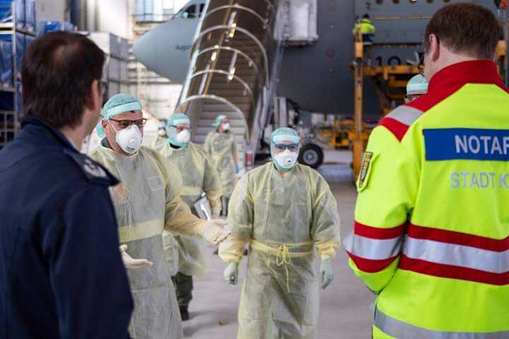 E’ da poco atterrato a Colonia l’aereo della Luftwaffe con a bordo pazienti in terapia intensiva dell’Ospedale di Bergamo. È la prima volta che sei pazienti sono trasferiti in biocontenimento con un unico volo.