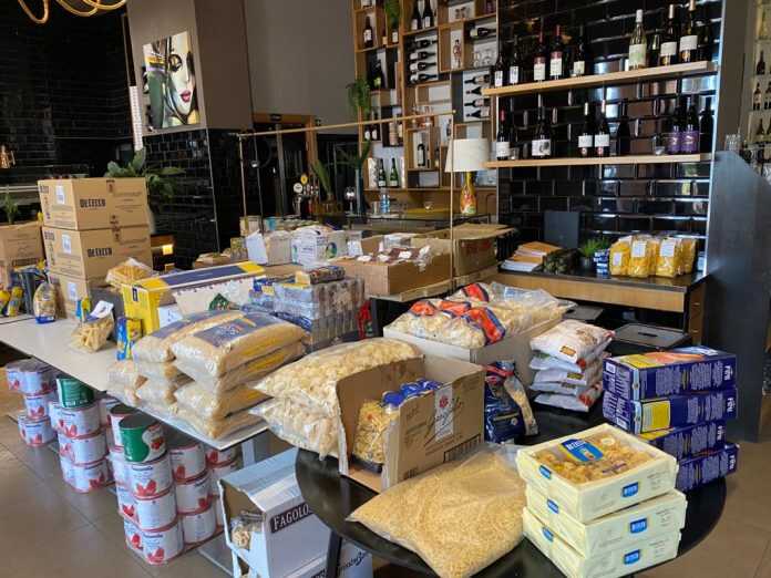 I tavoli in legno che, prima, ospitavano la clientela, ora, sono diventati punti di appoggio di buste, scatole e bottiglie pronte alla distribuzione. “I generi alimentari provengono da donazioni delle aziende prevalentemente salernitane e non solo, e dalle spese solidali di qualsiasi cittadino che si reca da noi e ce le consegna”, aggiunge l’imprenditore. Lo smistamento, invece, “parte da una richiesta che puo’ arrivare da qualcuno che si presenta da noi oppure telefona o, ancora, ci contatta via social; quella richiesta viene valutata e, se ci sono le condizioni, si procede con le consegne che vengono eseguite quotidianamente in tutto il territorio di Salerno, anche se spesso stiamo sconfinando andando in supporto di parroci e amministratori di altri comuni”.