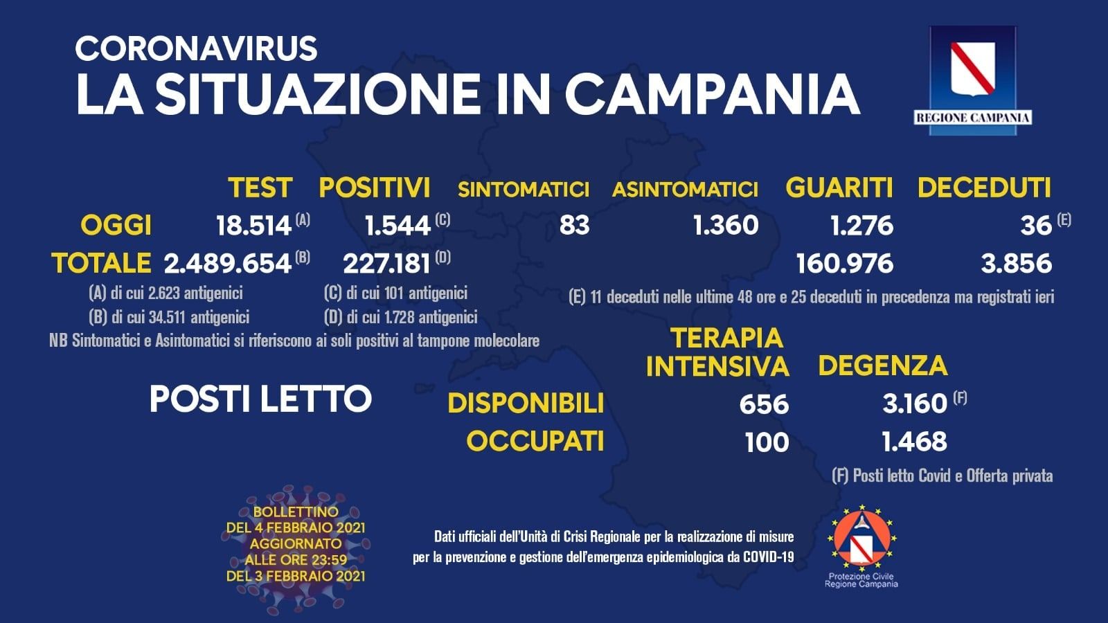 Positivi del giorno: 1.544 (di cui 101 casi identificati da test antigenici rapidi)