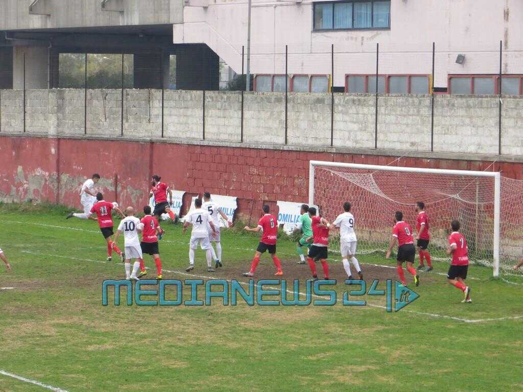 Dopo il buon avvio di gara, alla lunga il Pomigliano guadagna campo ed al 27′ rompe gli equilibri con l’ex Iovinella che, sugli sviluppi di una punizione di un ispirato Suriano, impatta tutto solo all’altezza del secondo palo e trafigge Abagnale.