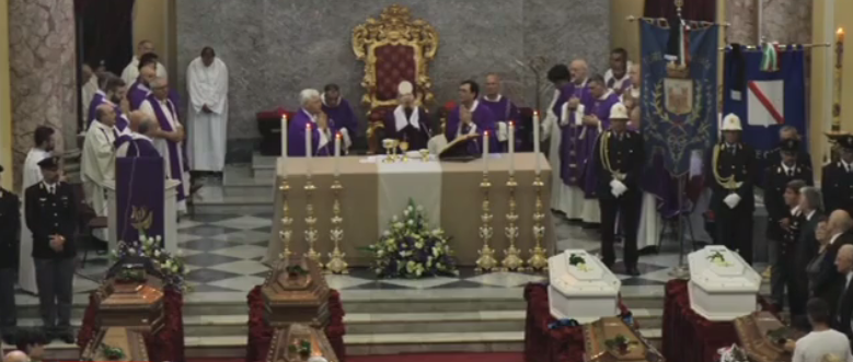 I carri funebri hanno raggiunto prima il Comune, presso cui ieri era stata allestita la camera ardente (dopo l’espletamento di tutti gli esami autoptici). Da lì, poi, il corteo verso la Basilica della Madonna della Neve.