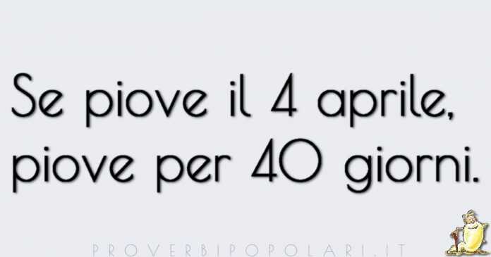 Dalla tradizione rurale proviene un detto che ancora oggi viene usato, in più dialetti e in più versioni. Questo antico adagio recita: “quattro aprilante giorni quaranta“, oppure, “quattro brillanti giorni quaranta“che in entrambi i casi significa che sarebbero previsti ben 40 giorni di pioggia se dovesse piovere il 4 aprile. “Aprilante”, è l’aggettivo usato per indicare ciò che è del mese di aprile e secondo il Bagli (1884) i primi quattro giorni del mese erano chiamati “quattro brillanti” e annunciavano un’ottima annata proprio se erano piovosi. Gli studiosi hanno analizzato l’archivio dell’osservatorio meteo di Napoli che possiede dati continuativi dal 1872 e dai quali si evince che non vi è nessuna correlazione tra la pioggia caduta il 4 aprile e i successivi 40 giorni. Ma un’analisi più approfondita mostra che negli anni nei quali è piovuto in uno dei giorni 3-4-5 aprile e che sono stati seguiti da più di 16 giorni piovosi entro il 15 maggio costituiscono il 70% dei casi. Risultati che suggeriscono che, in fondo, nei proverbi tramandati da secoli qualche base di verità c’è e che siano detti, casualità o tradizione, nelle regioni meridionali, ancor oggi il 4 aprile in molti fanno attenzione se dal cielo cade, o meno, qualche goccia di pioggia.