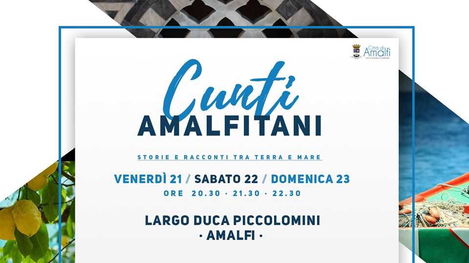Il 21, 22 e 23 agosto il largo Duchi Piccolomini diventa teatro dei “Cunti Amalfitani – Storie e racconti tra terra e mare”. Spettacolo musicale e teatrale, con partenza da Piazza Duomo, che racconta storie della città forgiata dall’opera millenaria tra mare e terra dei marinai contadini. Lo spettacolo sarà suddiviso in tre repliche che inizieranno alle 20.30, alle 21.30 e alle 22.30. In collaborazione con Sipario di Luce.