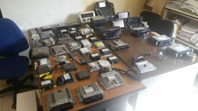 Nei pressi del luogo del ritrovamento dell’auto, la polizia ha scovato un garage aperto, utilizzato da diversi condomini dello stabile, al cui interno sono stati rinvenuti alcune centraline di motore per auto, plance di autoradio e computer di bordo di varie marche.