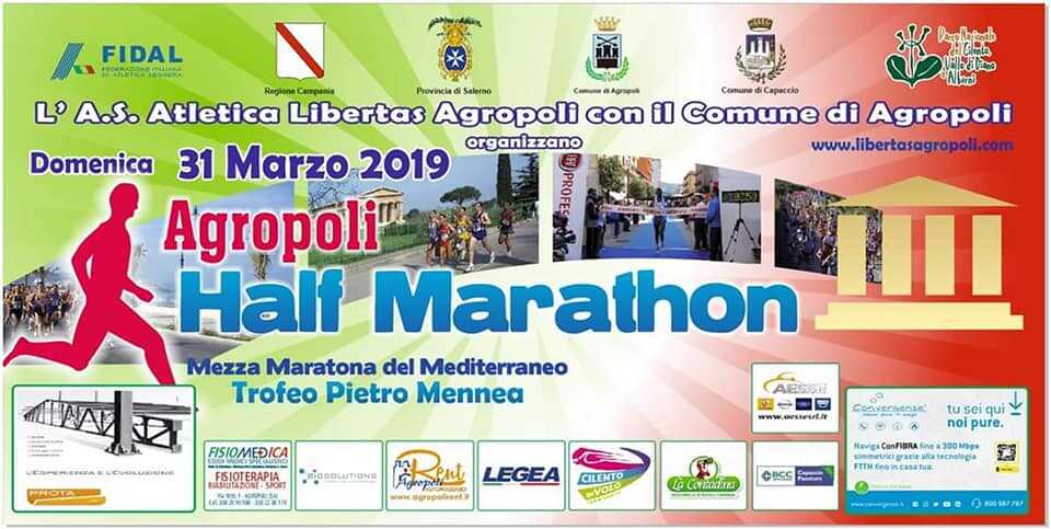 Gli atleti provengono da tutta Italia, ma non mancano runners da Spagna e Germania. La manifestazione, patrocinata dal Comune di Agropoli, venne ideata da Pietro Mennea ed è realizzata da A.S.D. Atletica Libertas Agropoli di Roberto Funicello. Risulta la più “antica” Mezza Maratona della Campania, ma sempre nuova nella sua essenza e nel suo proporsi, con un percorso velocissimo, con partenza ed arrivo nella suggestiva cornice di Agropoli e giro attorno ai templi di Paestum, patrimonio mondiale dell’umanità. E’ stato rinviato l’altro evento in programma dal 29 marzo al 7 aprile: il Torneo nazionale di tennis terza categoria. Per volere della Federazione, l’evento si svolgerà dal 26 aprile al 5 maggio, vista la concomitanza con un altro evento in corso, il campionato di serie C a squadre (prevista una tappa ad Agropoli il 7 aprile al Tennis Village).