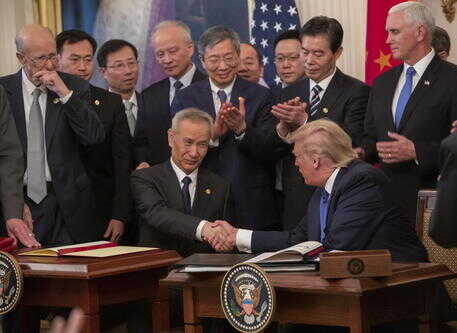 Aprendo di una fatto una tregua nella guerra commerciale in atto. La firma è avvenuta nella East Room della Casa Bianca dove, fra gli altri, sono presenti l’ex segretario di stato Henry Kissinger, il consigliere economico del presidente Larry Kudlow, il segretario al Commercio Wilbur Ross, la figlia-consigliere del presidente Ivanka Trump e il marito Jared Kushner.