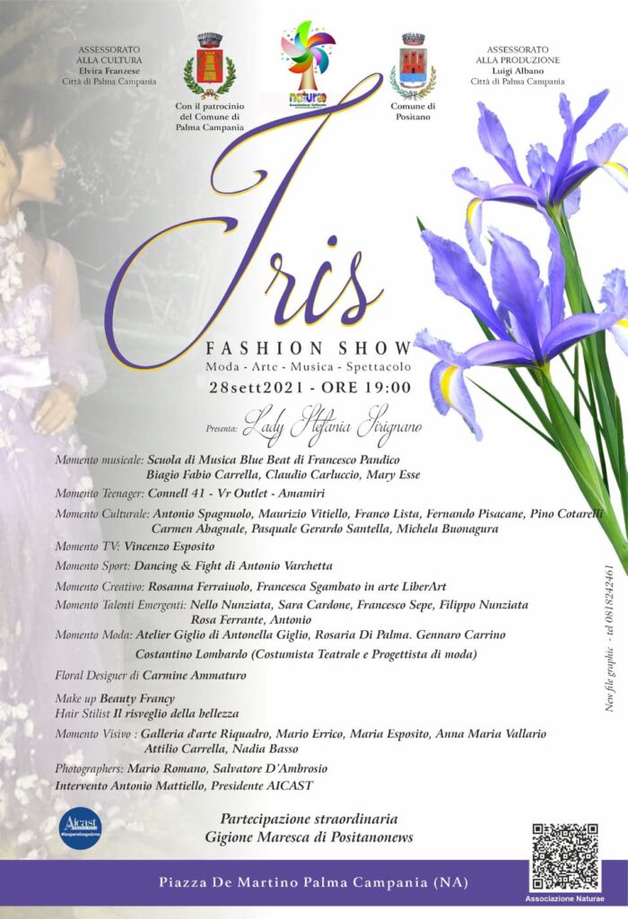 Martedì 28 settembre 2021, alle ore 19.00, nella centralissima Piazza De Martino a Palma Campania, si alzano i veli sul Fashion Show “Iris”. Evento di moda, arte, musica e spettacolo che si fregia, anche quest’anno, del patrocinio del Comune di Palma Campania. La presentazione della terza edizione della kermesse, come lo scorso anno, sarà affidata a Stefania Sirignano, Lady di Radio Punto Zero.
