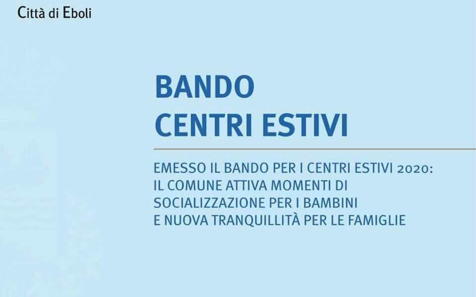 Nuove occasioni di socialità, gioco e spazi per le famiglie attraverso il progetto “Centri estivi 2020”. L’avviso pubblicato dal settore politiche sociali riguarda la gestione in sicurezza di opportunità di socialità e gioco per bambini e adolescenti nella fase 2 dell’emergenza COVID-19”, una modalità che tende a far recuperare ai bambini una parte degli spazi di socialità perduti in seguito all’emergenza epidemiologica e che il Comune di Eboli ha prontamente allestito per le famiglie ebolitane.