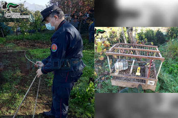 I militari hanno provveduto ad identificare i cacciatori e a sequestrare le armi e le munizioni in loro possesso: 4 fucili e 68 cartucce. Inoltre dopo un’attenta ispezione dei dintorni, i militari hanno rinvenuto e contestualmente sequestrato anche 2 richiami acustici illegali. Inoltre, i militari della Stazione di San Cipriano Picentino, coadiuvati da guardie volontarie venatorie del nucleo di Pontecagnano dell’associazione nazionale “Guardia Rurale Ausiliaria”, hanno scoperto in loc. “Malche” di Giffoni sei Casali (SA), all’interno di un terreno privato, un sistema mobile finalizzato alla cattura di avifauna selvatica, nello specifico cardellini, specie particolarmente protetta. Il sistema era composto da una rete, una maglia e alcune funi, azionando le quali il sistema scatta per intrappolare gli uccelli attirati dal canto di alcuni cardellini detenuti in gabbie nelle immediate vicinanze della trappola.