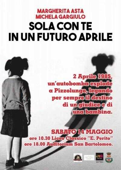 Sabato 14 maggio, il Centro Culturale Studi Storici, con il patrocinio del Comune di Eboli e la partecipazione dell’Associazione LIBERA e WEBOLI, organizza presentazione del libro “Sola con te in un futuro di Aprile” di Margherita Asta e Michela Gargiulo. Ore 10.30 Auditorium del Liceo Classico “E. Perito”. Ore 18.00 Auditorium di San Bartolomeo.