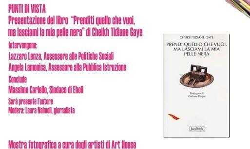 Un momento letterario in cui si affronterà il delicato tema della ricerca identitaria dei cittadini migranti. Parteciperà alla discussione lo scrittore e poeta di origini senegalesi Cheikh TidianeGaye che presenterà il suo libro “Prendi quello che vuoi, ma lasciami la mia pelle nera”, edito da Jaca Book. Durante l’incontro sarà possibile ammirare la mostra fotografica degli artisti di Art House: Armando Di Lorenzo, Carmine Esposito, Rachele Furiati, Diletta Allegra Mazza, Enea Medas, Christina Montone, Costangelo Pacilio e Ilaria Tranfici.