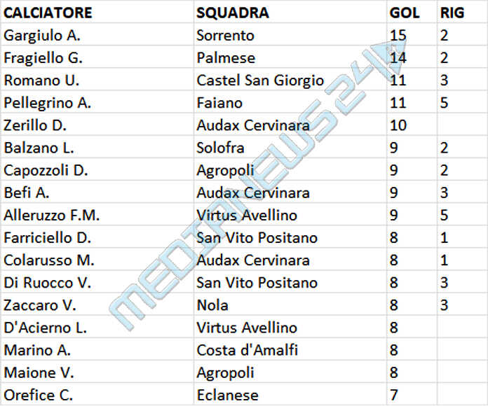 Gargiulo-Fragiello, continua il testa a testa per il titolo di capocannoniere del girone B di Eccellenza. Muovono la classifica anche Capozzoli, Maione e Colarusso.