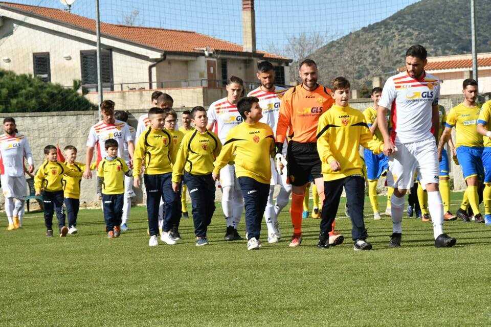 La Polisportiva Santa Maria ottiene la terza vittoria consecutiva battendo al Carrano 1 a 0 il Sant’Agnello. È ancora Margiotta a regalare i tre punti, con un rigore dagli undici metri, che avvicina i giallorossi alla qualificazione matematica per i play-off. In un sabato quasi primaverile, in un “Carrano” gremito, al sesto minuto è Romano dal limite ad andare vicino al vantaggio: la conclusione del classe 2001 termina di poco sul fondo. All’ottavo occasionissima nell’area del Sant’Agnello: ancora Romano, dall’interno dei sedici metri, spara centralmente. I ragazzi del tecnico Serrapica si fanno vedere al minuto diciassette, Ascione impegna Spicuzza, costretto a metterci i guantoni nel primo vero intervento della sua gara. Dopo un minuto Piacente, con una bella discesa, fa tutto bene sino ai venti metri: il terzino spara malamente alto, vanificando così una potenziale opportunità nata in contropiede. Gli ospiti prendono coraggio e al ventesimo calciano verso la porta giallorossa con Ascione, Spicuzza è attento e controlla in presa bassa. La partita sale di ritmo, al ventitrè di gioco Romano serve Manzo che batte di prima, la difesa gialloblù si salva chiudendo in angolo. Un primo tempo vibrante cambia parziale al venticinquesimo: il direttore di gara assegna un penalty per un tocco con le mani in area di un calciatore del Sant’Agnello su un’incursione di Itri. Margiotta, dagli undici metri, spiazza Zurino, siglando l’uno a zero che porta avanti i cilentani. Il Sant’Agnello sfiora il pari al minuto trentadue: Ascione mira l’angolino, Spicuzza è provvidenziale togliendo la palla dall’angolino basso. Sul corner seguente Di Donna è impreciso nella deviazione aerea, che si spegne sul fondo. La prima frazione termina con due incursioni giallorosse: Romano calcia alto, al quarantaquattresimo, e dopo pochissimo Manzo conclude al lato. La ripresa, più avara di emozioni rispetto ai primi quarantacinque minuti di gioco, si apre su toni più maschi e battaglieri. Al giro di lancette numero cinquantatré, Mosca, dalla distanza, non è preciso nella sua battuta a rete. La stessa punta, entrata dalla panchina al rientro dagli spogliatoi, ci riprova, senza esiti, al minuto sessantuno. Strianese, al ventesimo, va vicino al goal del pari: la parabola disegnata dal centrocampista ospite sembra sorprendere Spicuzza, che però si salva in due tempi. La Polisportiva va vicino al due a zero, al minuto settantasei, con Manzo che col mancino costringe Zurino ad un intervento super, con la mano di richiamo. Il numero dieci giallorosso ci riprova all’ottantacinquesimo, dopo una sgroppata, ma Zurino blocca senza troppi patemi.