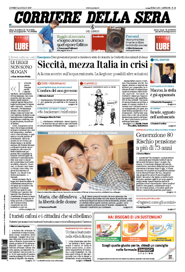 NewsEdicola Italia: le prime pagine nazionaliDi Marco Mattiello - 24 Luglio 2017041FacebookTwitterPinterestWhatsApp