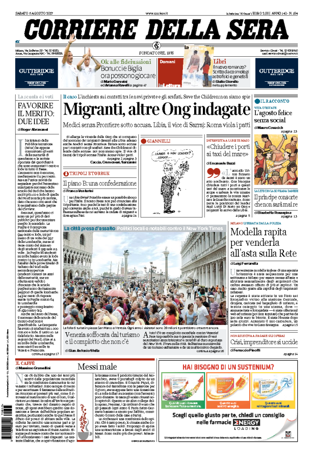 NewsEdicola Italia: le prime pagine nazionaliDi Marco Mattiello - 5 Agosto 2017054FacebookTwitterPinterestWhatsApp