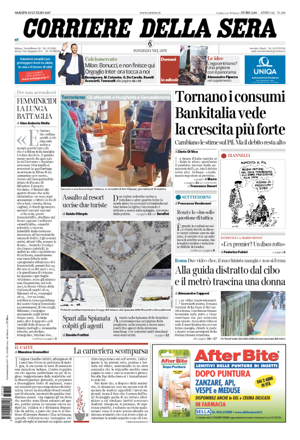 NewsEdicola Italia: le prime pagine nazionaliDi Marco Mattiello - 15 Luglio 2017053FacebookTwitterPinterestWhatsApp