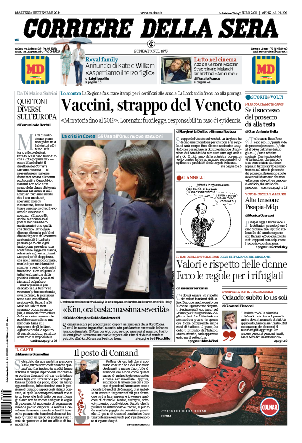 Prima Pagina Il Foglio 05/09/2017
