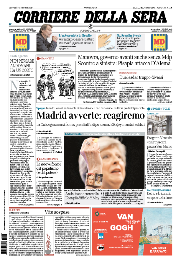 Prima Pagina Il Fatto Quotidiano 05/10/2017