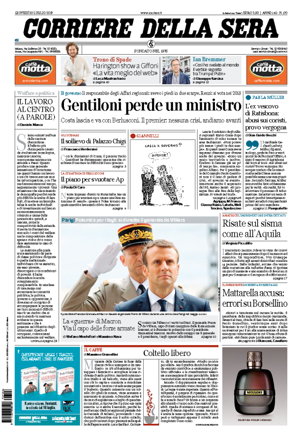 NewsEdicola Italia: le prime pagine nazionaliDi Marco Mattiello - 20 Luglio 2017049FacebookTwitterPinterestWhatsApp