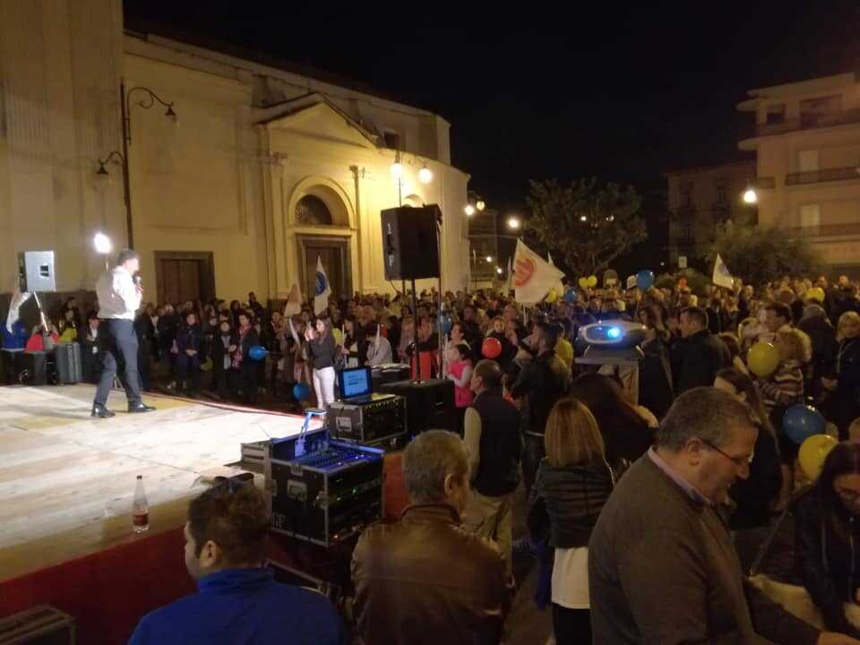 Tanti i temi della serata nonché della sua campagna elettorale. Ospedale, fiume, stadio, Palamangano, scuola e la riqualificazione del centro storico. L’ asticella si alza quando attacca le coalizioni avversarie, definendole ammucchiate e insalate miste, composte da trasformisti senza valori. Continua la sua offensiva contro Michele Russo (candidato del centro sinistra), definendolo tecnocrate, opportunista e servo della “Armata Brancaleone”. Non poteva mancare il ricordo dello scioglimento del comune per infiltrazioni cammorristiche.