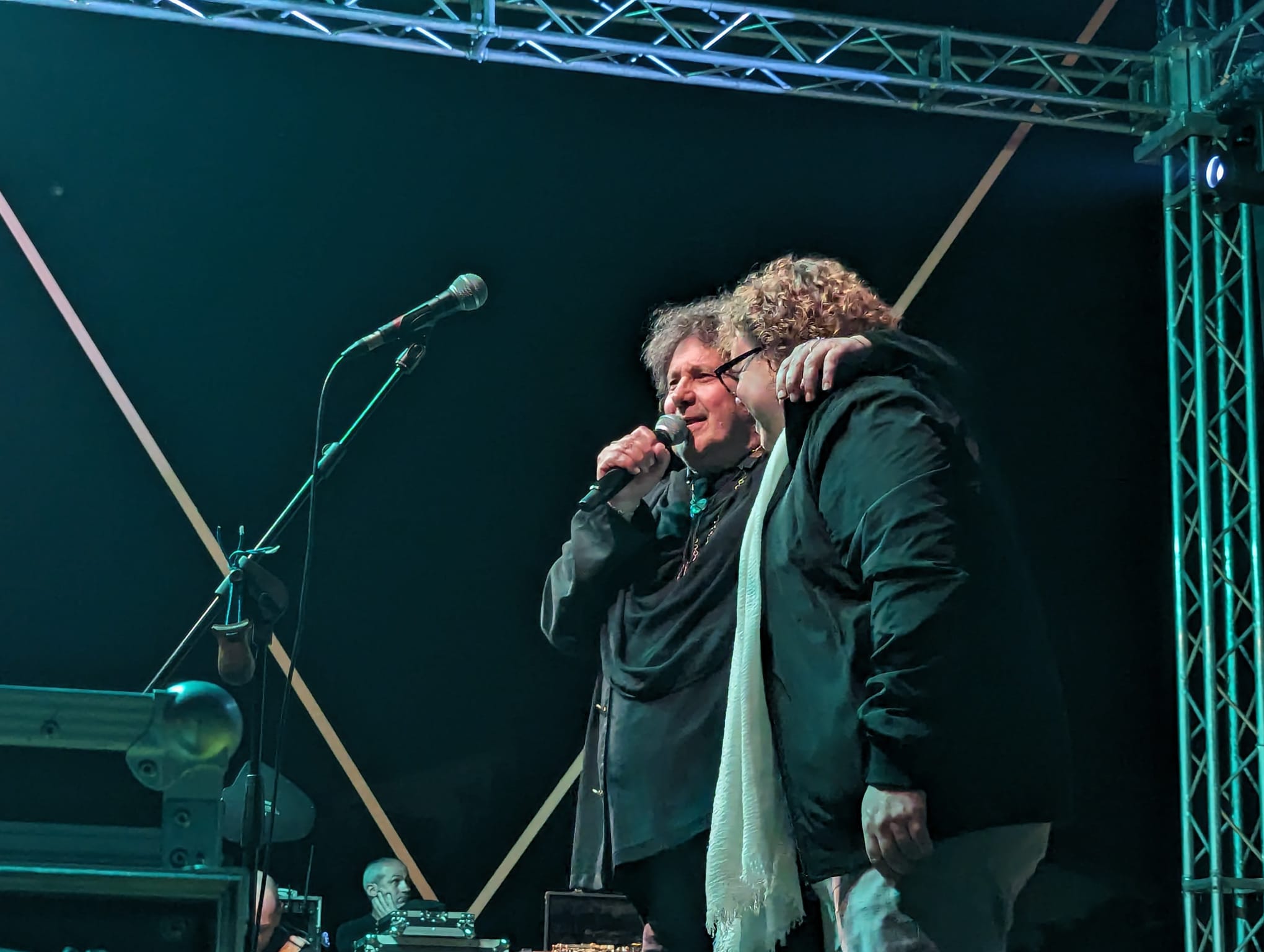 L’artista popolare ritorna a Pagani chiudendo, questa volta, la festa della Madonna delle galline. Tanta la partecipazione dei cittadini, che hanno intonato, insieme all’artista, le celeberrime canzoni come “Mane e mane” e “Soul Express”. Ad accompagnare l’artista c’è stata anche “la voce della tradizione”, Biagio De Prisco, la quale, in occasione della festa Madonna delle galline, ha cantato alcune canzoni popolari, per esempio, “A fronna ‘e limone”.