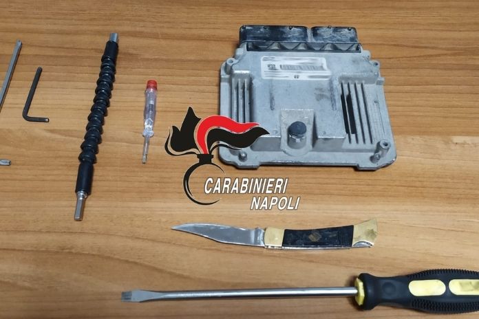 Sequestrati gli arnesi da scasso di cui esposito era in possesso. I veicoli sono stati restituii al legittimo proprietario.
