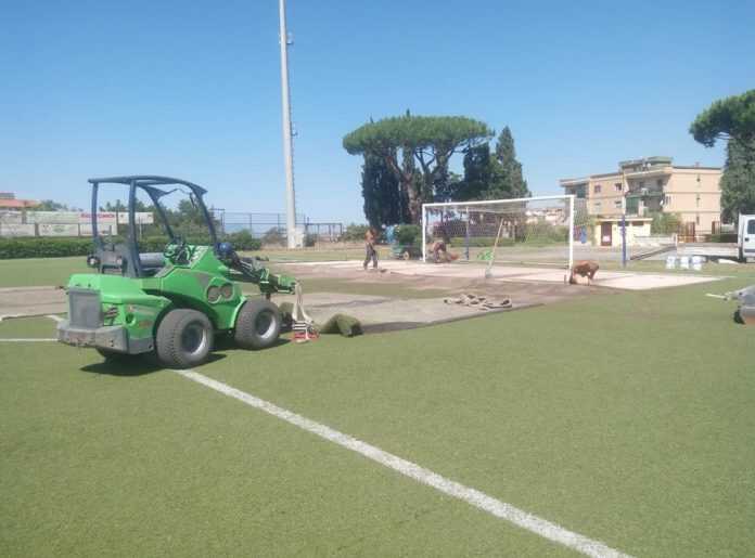 Sono cominciati nella giornata di mercoledì gli interventi di manutenzione allo stadio Solaro di Ercolano. Gli interventi sul manto in sintetico si sostanzieranno nel completo rifacimento del tappeto di gioco nelle zone delle due aree di rigore, mentre il resto del manto sarà “spazzolato”.