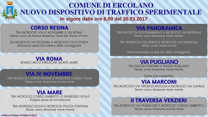 Entrerà in vigore dalle 8 di domani il nuovo dispositivo di traffico sperimentale in diverse strade di Ercolano.