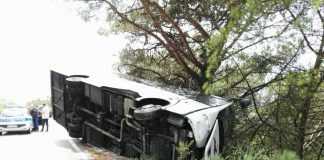 Poteva finire peggio la disavventura di 35 passeggeri cinesi e autista italiano che si sono ritrovati a fare i conti con un rocambolesco incidente avvenuto alle pendici del Vesuvio oggi.