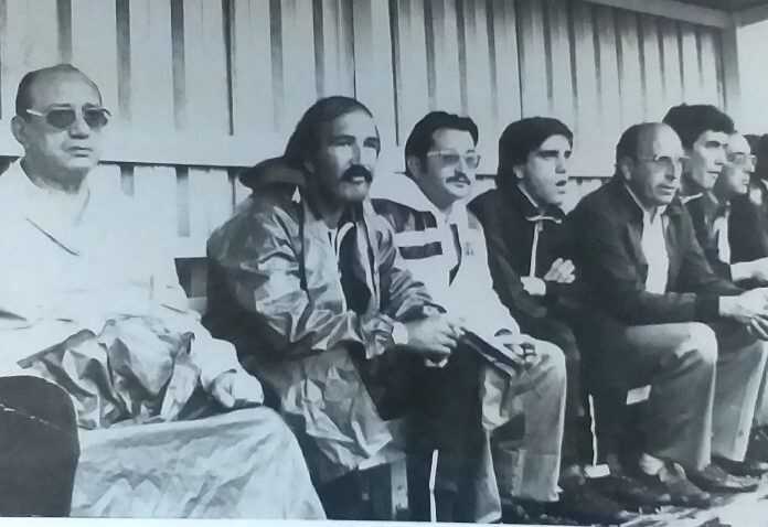 Una foto racconta il resto. Una panchina della Nocerina edizione 1979-80, prima partecipazione rossonera alla nuova C1, retrocessione fresca dalla B e voglia di immediato riscatto, notevoli risorse spese da Orsini e company, amichevole estiva con i rumeni di Lucescu ancora calciatore. Fu un disastro, la Nocerina riuscì soltanto a salvarsi, grazie alll’acume del subentrante tecnico Balestri, un toscano che aveva fatto pratica a Foggia con Puricelli, un toscano che intravide il talento giovane di Tardelli a Pisa. E si salvò, la Nocerina, grazie al gol dell’esordiente attaccante di Scafati che si chiamava Gabriele Scarfati, segnò contro la Cavese. C’erano in quella squadra altri giovani ma non erano maturi, come Faccini e Nuccio, oppure il figlio d’arte Skoglund. Delusero i meno giovani, in particolare Pauselli e Spinelli. Ma torniamo alla panchina della foto, partendo da destra. L’indimenticabile Nicola Califano, molosso vero, prof di disegno alla De Lorenzo, accompagnatore-segretario-factotun rossonero. Quindi Mario Santececca, l’allenatore della prima parte della stagione, romano, aveva fatto bene prendendo il Bari da Losi ma a Nocera fu un flop completo. Poi il vice presidente Buscetto. L’attaccante di riserva Ciccio Pecoraro buonanima.