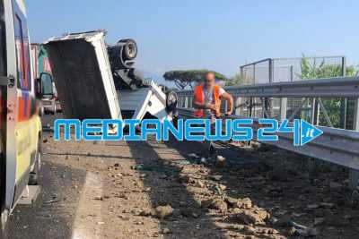 Si registra da Napoli direzione Salerno all’altezza di Ercolano Scavi, un incidente che ha coinvolto un camion Fiat con due occupanti all’interno, un furgone ribaltabile che trasportava terriccio con pietre.