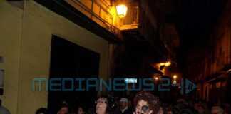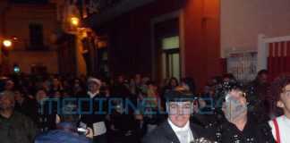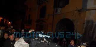 Bagno di folla a Pagani per l’esequie di Carnevalone, un evento voluto fortemente dai residenti e commercianti di via Matteotti (meglio conosciuta come via Lamia) tenutosi a partire dalle 17.00 al cortile di Franco Tiano. Bagno di folla come nelle grandi occasioni, per un evento organizzato quasi in sordina e pubblicizzato solo su Facebook. Insomma, in pochi lo sapevano e quanti invece si sono ricordati dell’evento si sono lasciati travolgere dalla comicità dei familiari di Carnevalone, che hanno inscenato litigi a suon di parolacce e “mazzate” mentre una banda musicale suonava a morto per avvisare tutti dell’arrivo di Carnevalone. Il corteo si è snodato lungo via Matteotti (ex via Lamia), passando per via Amendola, piazza Cappella, via Astarita, viale Trieste, via Califano, piazza D’Arezzo e nuovamente via Matteotti per rientrare poi al cortile storico di Tiano. E lì, dopo l’ultima sceneggiata della “rabbia” della mamma di Carnevalone verso una nuora un pò troppo “disinibita”, il fantoccio è stato bruciato.