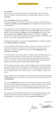 Su Facebook, il rettore Unisa, candidato per la Lega, ha scritto Alle battute finali di questa campagna elettorale, permettetemi di ringraziare la mia famiglia per aver compreso le motivazioni alla base del mio impegno e soprattutto per aver perdonato il tempo loro sottratto in questo mese. Il sorriso dei miei ragazzi come sempre mi motiva e mi rassicura.Ma proprio oggi il Rettore è finito di nuovo nell’occhio del ciclone per la lettera-invito scritta agli studenti.