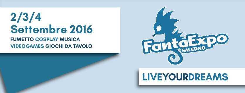 Dopo il grande successo di pubblico dell’edizione 2015, ben 16.000 i visitatori, torna il 2,3,4 settembre 2016 al Parco dell’Irno e al Teatro Ghirelli, il FantaExpo, Fiera del Fumetto, dell’Animazione e della Fantasia. L’evento, giunto alla sua quinta edizione, cresce ancora di più e lo fa sempre con il patrocinio del Comune di Salerno e di altri importanti partner, ma soprattutto, vista la scelta vincente delle passate edizioni, vuol farlo come nella tradizione del FantaExpo, con nuovi spazi, tante aree ampliate, e interessanti proposte di carattere artistico – culturale.