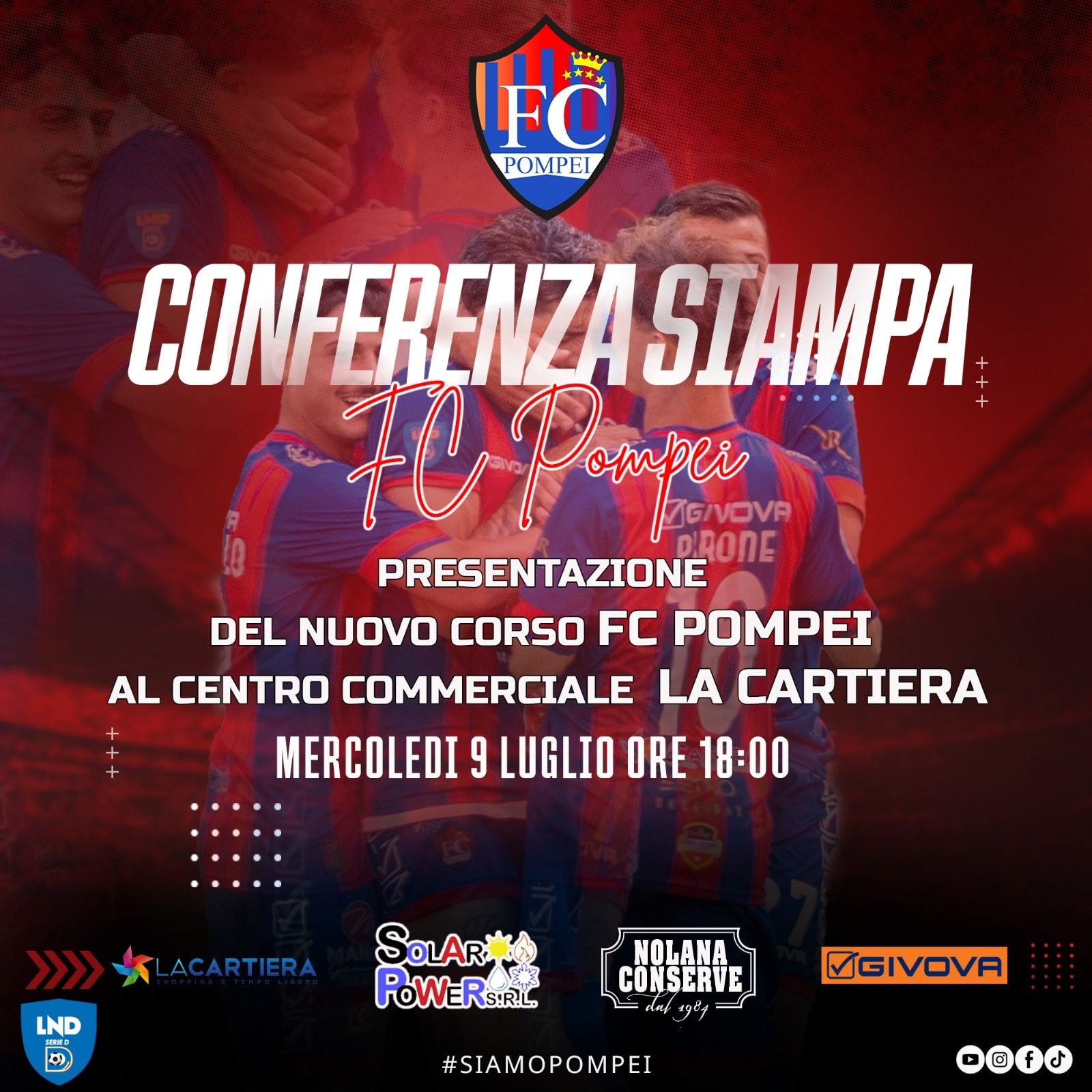 L’FC Pompei è pronta a presentare il proprio futuro: una conferenza stampa aperta al pubblico per svelare la nuova proprietà, lo staff tecnico-dirigenziale e, soprattutto, un progetto ambizioso e profondamente legato all’identità pompeiana.