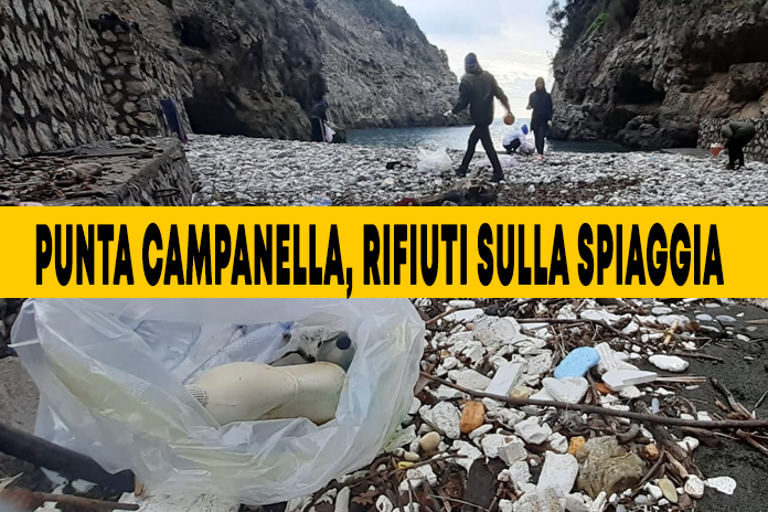 Fiordo di Punta Campanella – Rifiuti sulla spiaggia di Crapolla, volontari stranieri ripuliscono