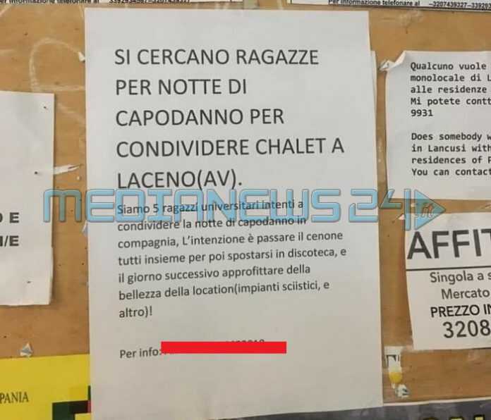 “Siamo cinque ragazzi universitari intenti a condividere la notte di Capodanno in compagnia”. E per le ragazze interessate, numero di telefono alla fine del testo. Non è passato inosservato il messaggio scritto da un presunto gruppo di giovani universitari e affisso alle bacheche dei bar di facoltà all’Università di Fisciano nei giorni scorsi.