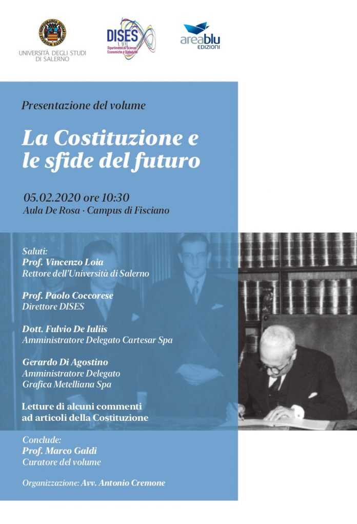 Il Dipartimento di Scienze Economiche e Statistiche dell’Università di Salerno ha prodotto un Commentario alla Costituzione Italiana, intitolato “La Costituzione e le sfide del futuro” che sarà presentato mercoledì 5 febbraio alle ore 10.30 nell’aula De Rosa del Campus di Fisciano.