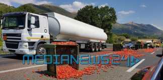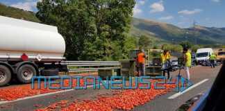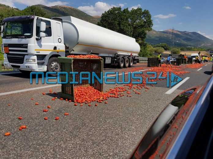 E’ accaduto nella tarda mattinata lungo la Salerno-Reggio Calabria. Un camion che trasportava pomodori – appunto – ha perso il carico, che si è riversato sull’asfalto all’altezza dello svincolo di Polla, lungo la corsia nord.