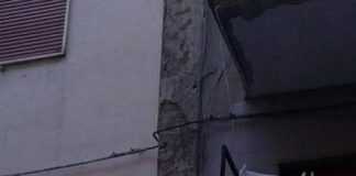 FOTO – Crollano calcinacci in strada e sui balconi, tragedia sfiorata