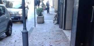 I proprietari degli esercizi commerciali si sono rinchiusi dentro per evitare di farsi male. Panico anche tra i clienti, tutti coinvolti in un vero e proprio fuggi fuggi generale. La strada al momento risulta chiusa, subito sul posto anche gli esponenti della protezione civile Papa Charlie, si attende ora anche l’arrivo dei vigili del fuoco. I volontari sono attualmente al lavoro per la messa in sicurezza dell’area e del palazzo stesso.