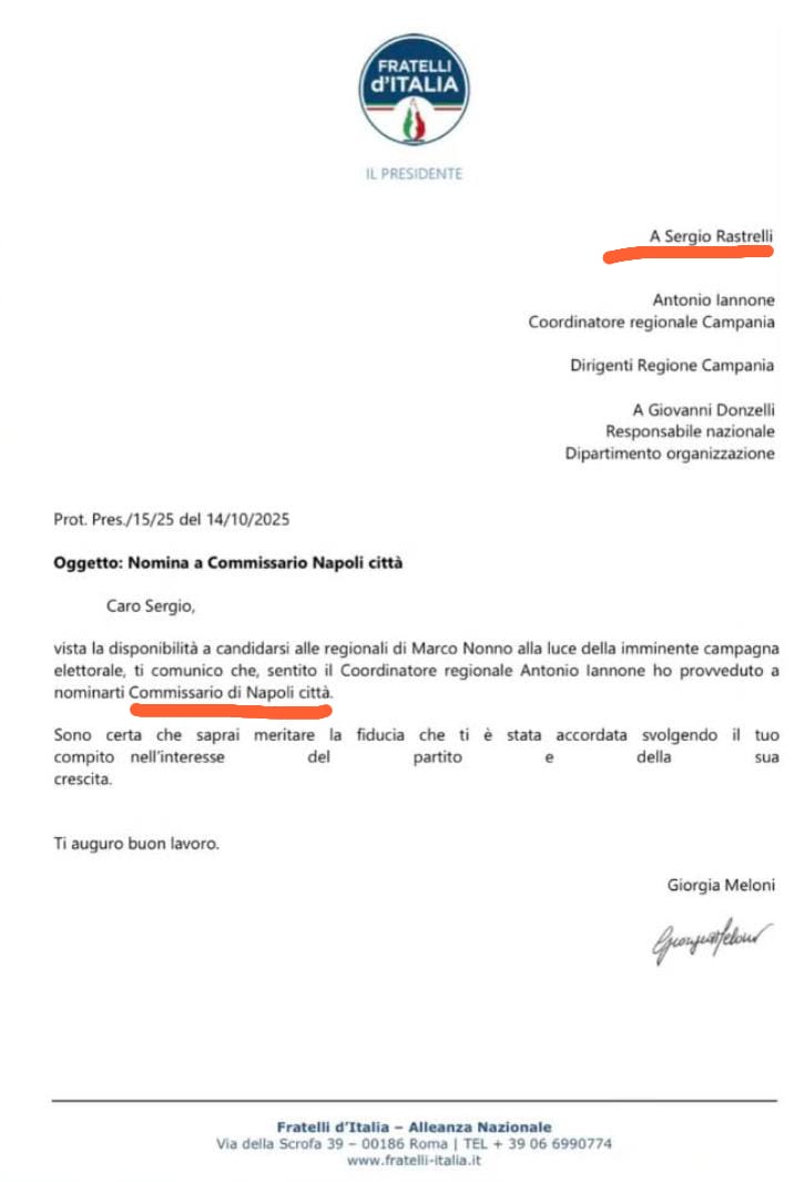 Va detto che la decisione dei vertici romani di accontentare le ambizioni di Schifone e Rastrelli sta già provocando un terremoto sui territori, che finirà per penalizzale la corsa di Edmondo Cirielli alla presidenza della Regione.