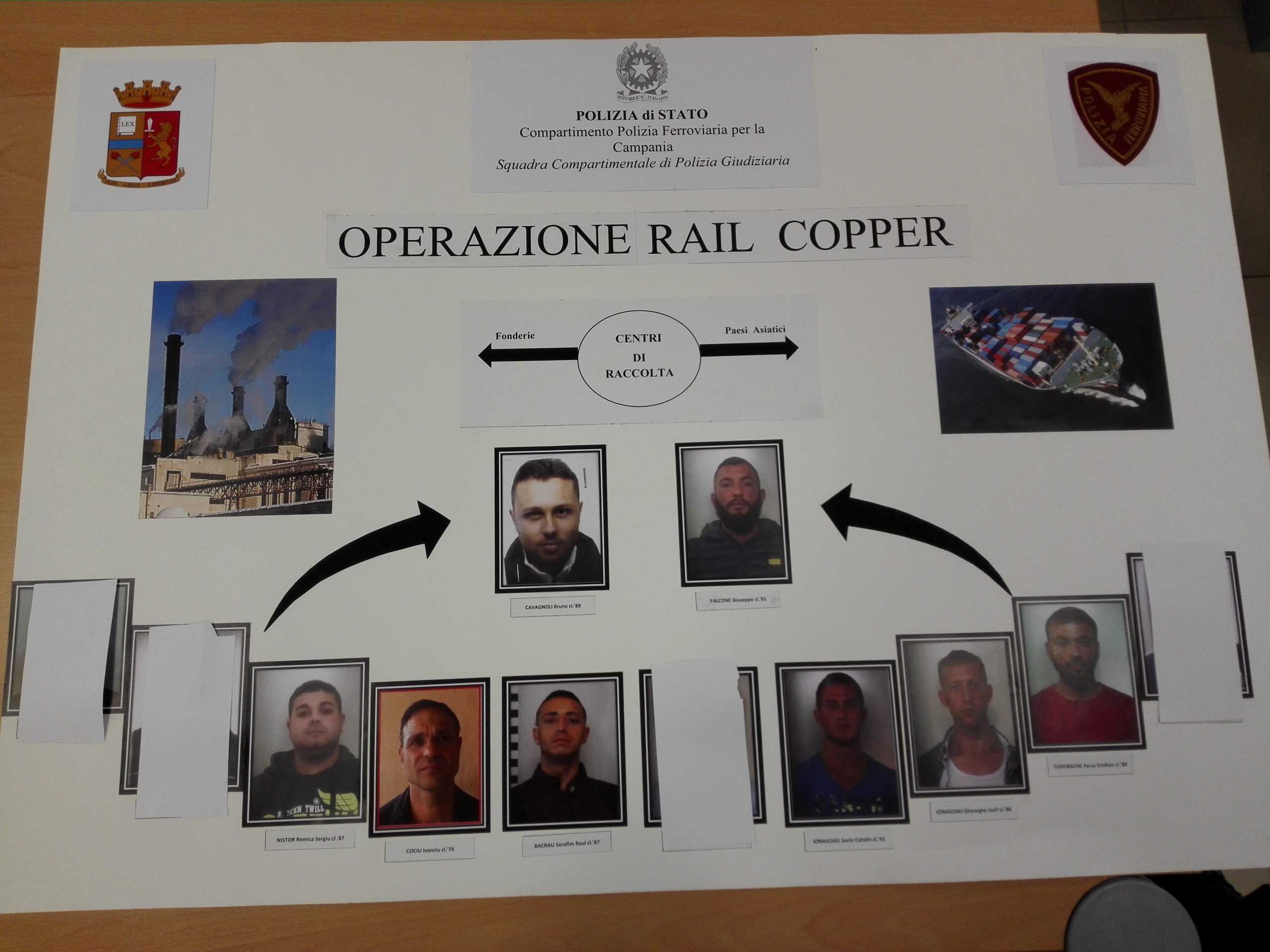 Vasta operazione di Polizia contro i furti di rame tra le province di Napoli e Caserta, fenomeno diffuso ormai da diversi anni, in particolar modo nei pressi delle linee ferroviarie. Sgominata una banda composta da cittadini italiani e rumeni, dedita al furto e alla ricettazione del materiale.