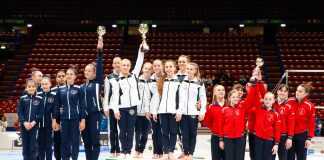 Dopo la lunghissima giornata di gare e in attesa della terza prova in programma a giugno a Torino, la Ginnastica Salerno guida la classifica di Serie A con 326.700 punti, con un buon margine su Spes Mestre (319.850) e Civitavecchia (317.550).