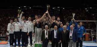 Nicola Bartolini, Tommaso De Vecchis, il croato Filip Ude, Gianmarco Di Cerbo e Salvatore Maresca hanno raggiunto quota 166.000 punti, staccando nettamente la Pro Carate (163.300) e la Ginnastica Civitavecchia (161.400). A festeggiare gli atleti salernitani, a fine giornata, il brindisi col pluricampione Yuri Chechi, che s’è complimentato con la Ginnastica Salerno per i grandi risultati ottenuti.